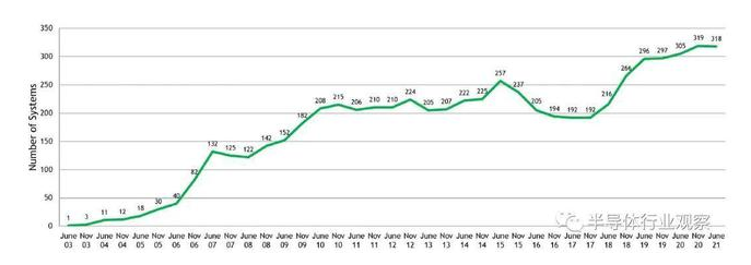 无论如何,如果将 Nvidia InfiniBand 和 Intel Omni-Path 加在一起,以公平计算 InfiniBand 在 2021 年 6 月的排名中的代表,那么有 207 台机器,占列表的 41.4%。我对列表中的其他一些所谓的“专有”互连表示怀疑(主要是中国的机器),我们也认为其是 InfiniBand 变体。