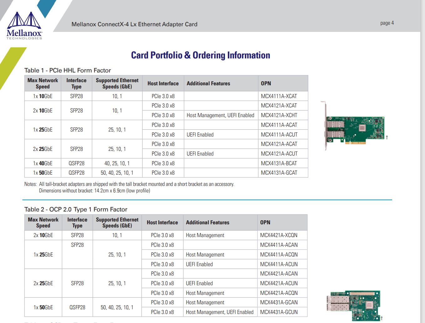 ConnectX-4 Lx EN 适配器卡提供 1、10 和 25 GbE 带宽、亚微秒延迟和每秒 7500 万包消息速率的组合。它们包括通过融合以太网 (RoCE)、以太网无状态卸载引擎、叠加网络、GPUDirect 技术和多主机技术为 RDMA 提供本地硬件支持。