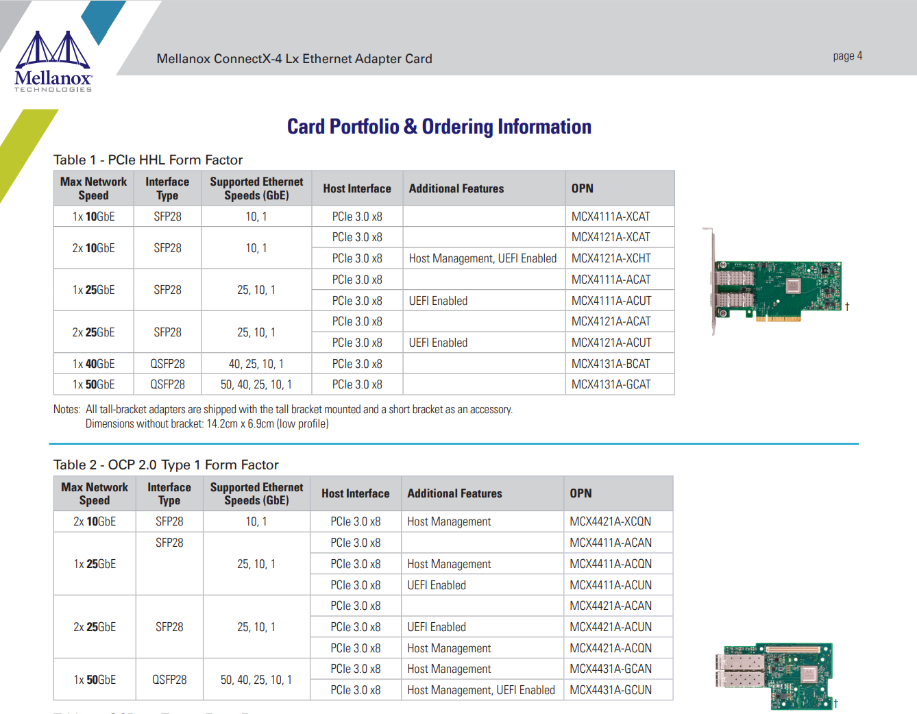 ConnectX-4 Lx EN 适配器卡提供 1、10 和 25 GbE 带宽、亚微秒延迟和每秒 7500 万包消息速率的组合。它们包括通过融合以太网 (RoCE)、以太网无状态卸载引擎、叠加网络、GPUDirect 技术和多主机技术为 RDMA 提供本地硬件支持。