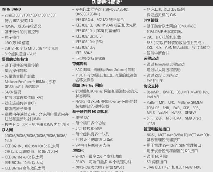 主机接口: PCIe 3.0 x16 最大传输速度:FDR and 40/56GbE 型号;MCX455A-FCAT 适用网络类型:万兆以太网 主芯片:ConnectX-4 VPI网络接口卡 总线类型: PCI-E 网络端口数: 1个 接口类型:QSFP28/QSFP+/QS...