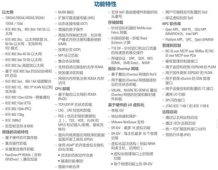 - 先进的存储功能,包括NVMe over Fabric卸载